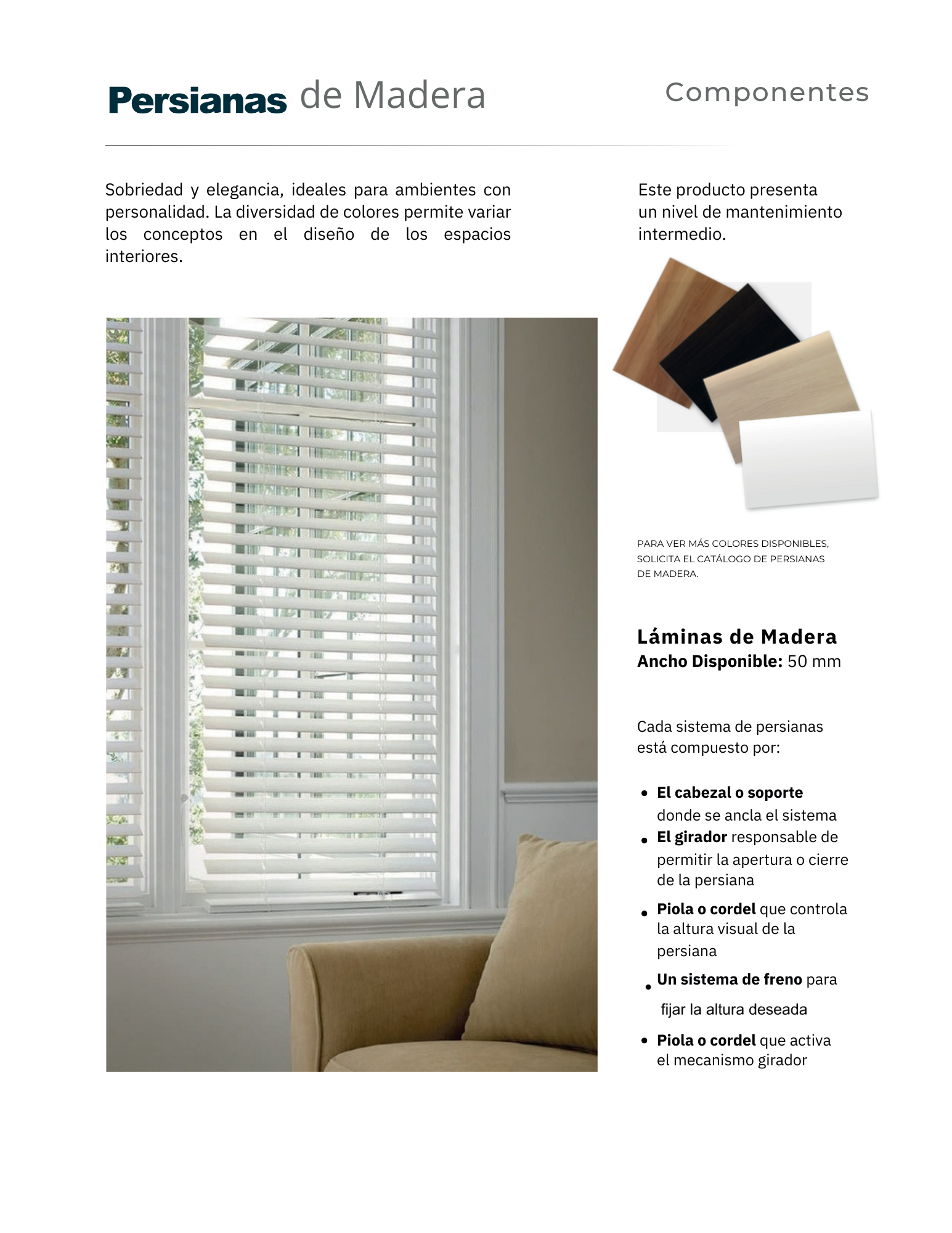 Fabricadas con madera 100% natural, cada Persiana de